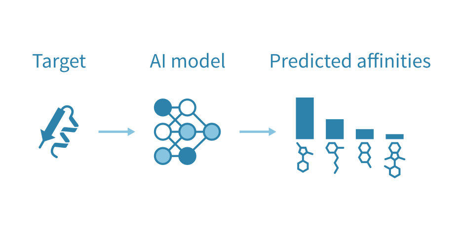 Once a biological target has been identified, large language model (LLM)-based AI tools can be used to perform in-silico screening and predict binding affinities across millions of drug-like molecules. These models are customizable—you may choose to focus on a specific target, a target family, or a disease-associated pathway.