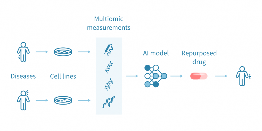 As shown in the diagram, multi-omic measurements from disease models feed into AI algorithms that predict effective drug candidates, offering a powerful and unbiased strategy to uncover new therapeutic opportunities.