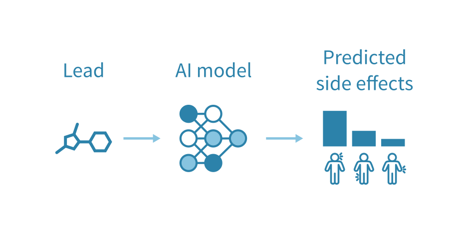 To further de-risk clinical development, we develop AI models that predict potential side effects of lead compounds before they enter human trials. These models support more informed candidate selection by identifying safety concerns early, thereby reducing the likelihood of adverse events during clinical studies.
