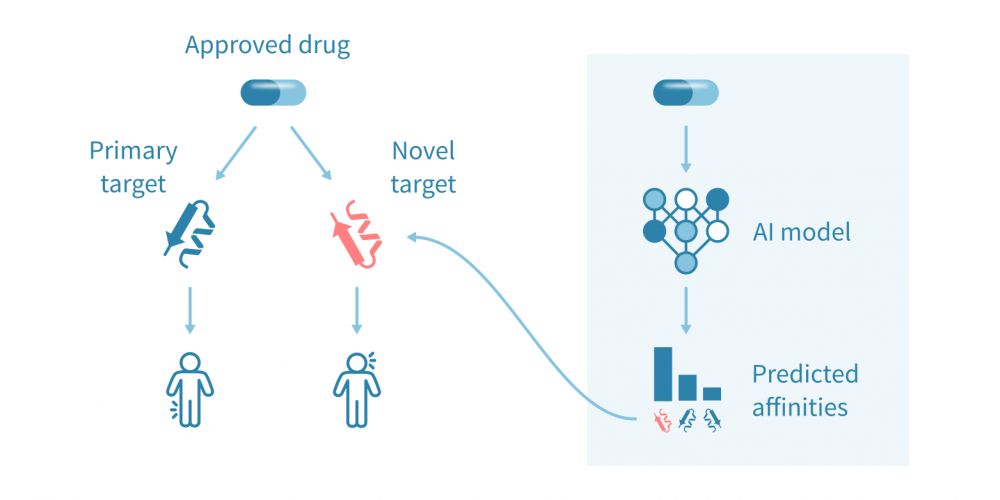 - Target-based drug repurposing: Using AI models to predict the binding affinities of approved drugs to novel disease targets